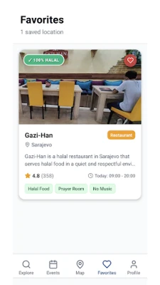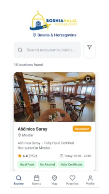 Whether you’re visiting Sarajevo, Mostar, or smaller towns, our app helps you easily find halal food spots, Islamic cultural sites, and upcoming halal events to enrich your journey.