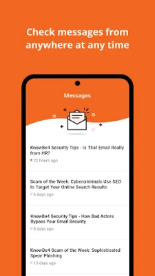 The KnowBe4 app makes it easy for learners to stay on top of user messages such as custom announcements, and KnowBe4 newsletters like the Scam of the Week and Security Hints and Tip.