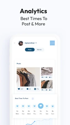 - Gain insights with Instagram analytics for best performing posts, likes, follower growth and locations
