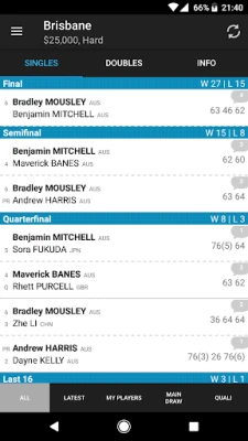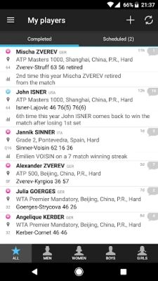 Resultina covers ATP, WTA, ITF, ITF juniors and Tennis Europe tennis results. All info in one app.