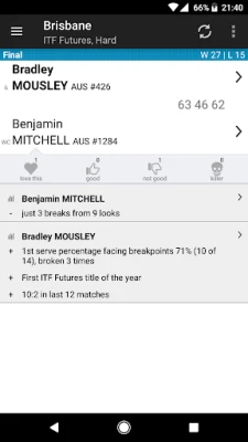 - Browse results, draws, player activities and even head to head stats