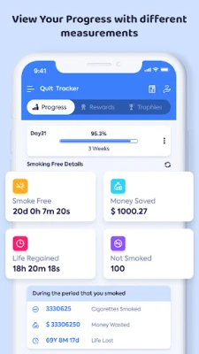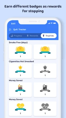 Earn Motivational Badges: Unlock trophies and badges for every smoke-free milestone to keep your motivation high.