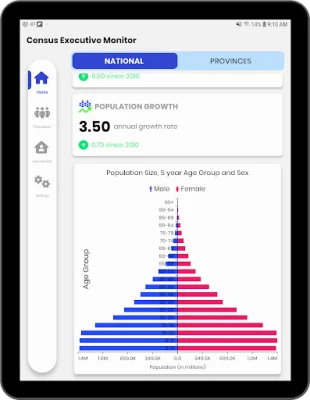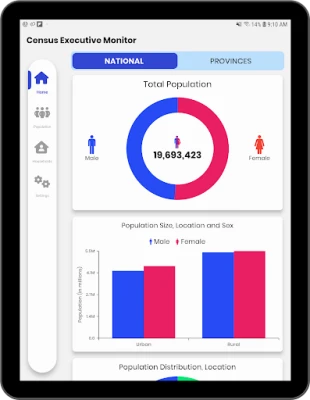 The Census Executive Monitor Mobile App presents Zambia key Census indicators of population and household data at the national, provincial, district, constituency and ward levels.